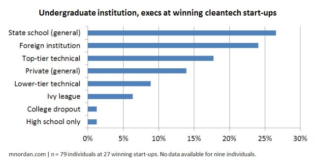 To answer this question, you’d need to do two things. First, you’d need to analyze the personal histories of core team members at a slew of successful cleantech start-ups to figure out what they had in common. Second, you’d need to compare these people against their peers at unsuccessful companies in the same domains, to learn whether the winning teams differed from the losing ones.